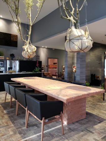 Loft do Jovem Europeu, espaço do arquiteto Michel Keller na Mostra Elite Design, traz mesa revestida com produto da Olivia Revestimentos Sustentáveis