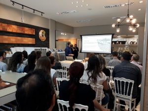 Cerca de 30 arquitetos e designers foram recepcionados com um farto café colonial, bem à moda da terra, como a Olivia, acompanhado de cafés especiais da Ana Terra Café Store, especializada no assunto.  Após, os convidados ouviram com atenção a apresentação do Eng. Bruno Frasson, diretor da Olívia Revestimentos, falando da construção ímpar  e das particularidades da marca, de todos os processos que nos levam a  assinar como sustentáveis e mais profundamente sobre cada linha e produto. O feedback, através de perguntas e comentários no local , além das muitas postagens nas redes sociais, nos mostra que estão no caminho certo: transparência e verdade.