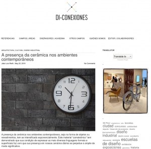 A presença da cerâmica nos ambientes contemporâneos, esse foi o tema da matéria escrita pelo arquiteto e designer João Rieth publicada no site internacional de design DI-CONEXIONES.